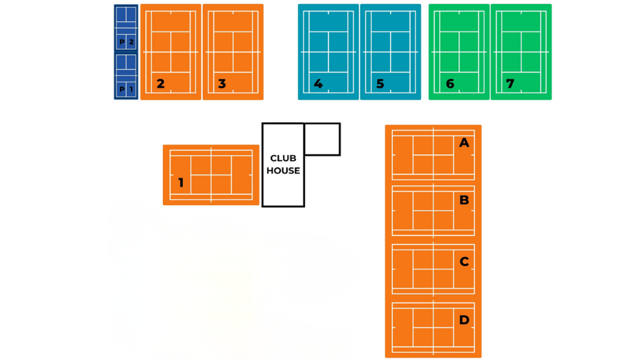 - 4 courts terre battue intérieurs (A-B-C-D)